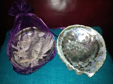 A beautiful Abalone shell filled with pure white loose sage presented in a mesh purple drawstring bag. Beautiful gift idea for those who want to have loose white sage on hand and/or prefer using a Abalone bowl for smudging and blessing their home. Also great for desk top at work to have the pleasant pure white sage aroma nearby. Bowl size -approximately 6 inches. Perfect size for use in smudging a space too!