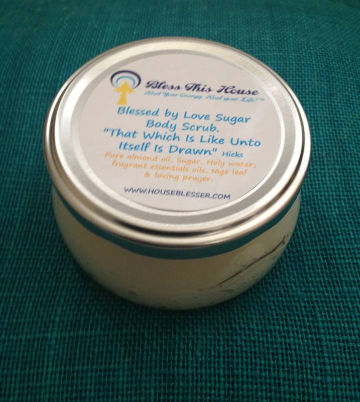 Like our Blessed By Love Candle, this lovely, fragrant "Blessed By Love" Sugar Scrub is made with Organic sugar, Pure almond oil, Loving Intention, Prayer, Holy Water, Sage Leaf as well a lovely fusion of citrus, cherry blossom, hydrangea, apple, peach & blondewood! Smells romantic and beautiful. Excellent for exfoliating and leaves behind the fragrant essence of "love". Presented in a six ounce decorative jar! "That which is like unto itself is drawn" use this lovely scrub to bless yourself and attract love.