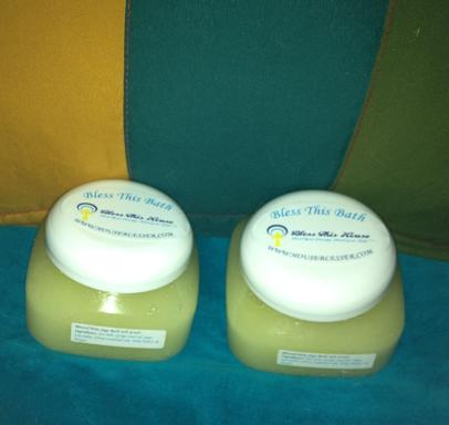 Bless This Bath - Salt Scrub - Homemade Bath Scrub for exfoliating, cleansing and moisturizing your skin. Six Ounce size. Made with our signature Sacred Holy Sage aroma formula, Sea Salt, Grape Seed Oil, Lavender, Citrus & Sage essential oil blend, Holy Water & Prayer. Great way to cleanse, heal and bless your bath & body! Great gift idea too!
